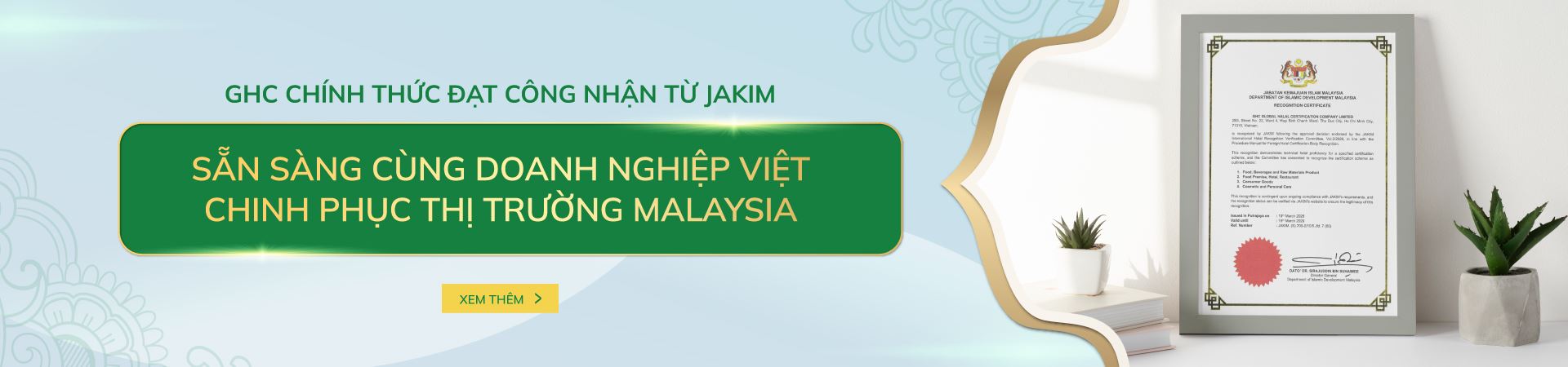 GHC đứng số 1 tại Việt Nam với phạm vi được cấp phép chứng nhận Halal rộng nhất, với 8 lĩnh vực gồm: Thực phẩm, đồ uống; Nhà hàng, khách sạn; Nông sản; Thức ăn chăn nuôi; Giết mổ động vật; Hàng tiêu dùng; Mỹ phẩm; Du lịch thân thiện với người Hồi giáo theo 23 tiêu chuẩn Halal do Tổ chức hợp tác Hồi giáo (OIC), Các nước vùng vịnh (GCC), Malaysia (MS), Indonesia (SNI) ban hành.