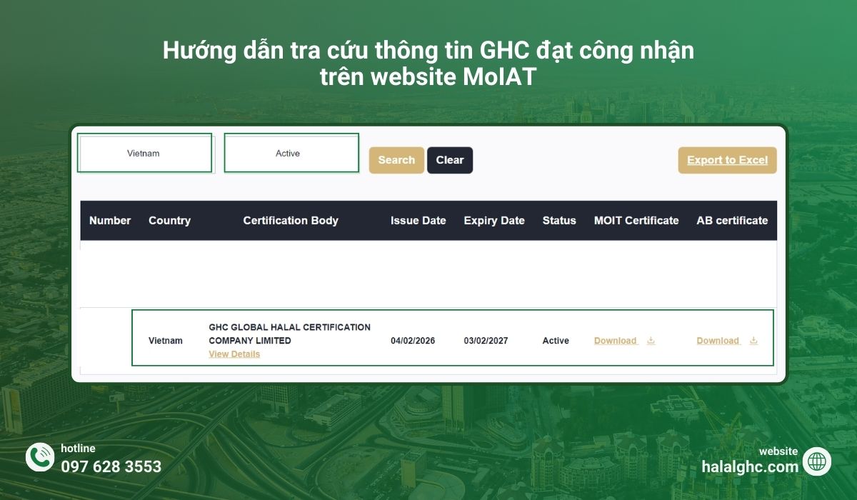 - Doanh nghiệp Việt Nam sở hữu chứng nhận Halal do GHC cấp được phép xuất khẩu hàng hóa Halal chính ngạch vào UAE