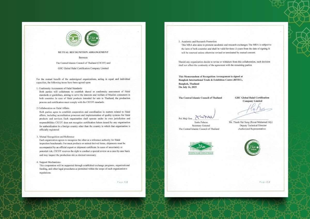 Vừa qua, GHC đã chính thức được CICOT công nhận thông qua Thỏa thuận công nhận lẫn nhau (MRA). Sự công nhận này đặt GHC vào vai trò tổ chức chứng nhận Halal có khả năng kết nối trực tiếp doanh nghiệp Việt Nam với thị trường Thái Lan - một trong những trung tâm Halal quan trọng của khu vực Đông Nam Á.