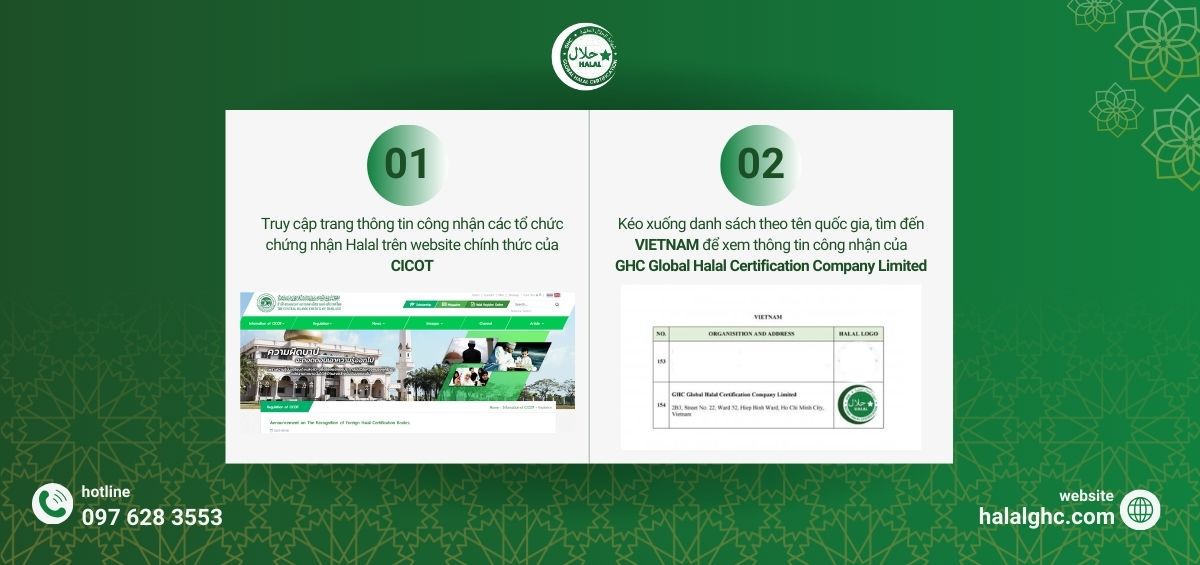 Mới đây, GHC đã chính thức được CICOT công nhận thông qua việc kí kết Thoả thuận công nhận lẫn nhau (Mutual Recognition Arrangement). Theo thỏa thuận này, CICOT và GHC thừa nhận nhau như cơ quan tham chiếu trong hoạt động đánh giá, kiểm tra và cấp chứng nhận Halal trên cơ sở tuân thủ các chuẩn mực và quy định Halal tương ứng của mỗi bên.