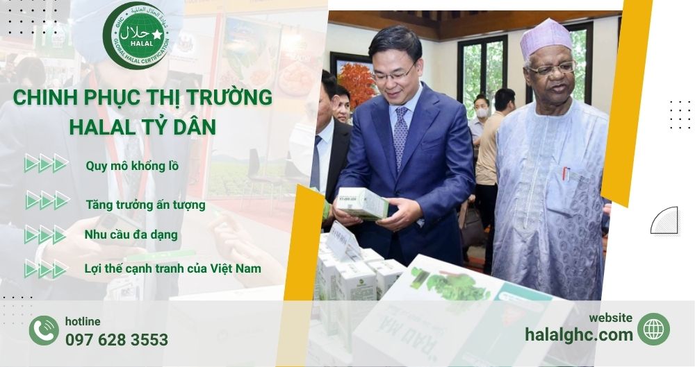 Quy mô khổng lồ: Cộng đồng người Hồi giáo chiếm gần 1/4 dân số thế giới và có mặt ở khắp các châu lục, từ Trung Đông, Đông Nam Á (Indonesia, Malaysia) đến Châu Âu, Châu Mỹ. Nhu cầu tiêu dùng các sản phẩm Halal không ngừng tăng cao: Thực phẩm & đồ uống, Mỹ phẩm & dược phẩm, Thời trang Halal, Du lịch Halal.
